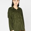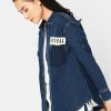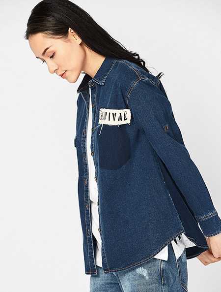 • Sơ mi denim nữ, túi ốp ngực, gắn chữ